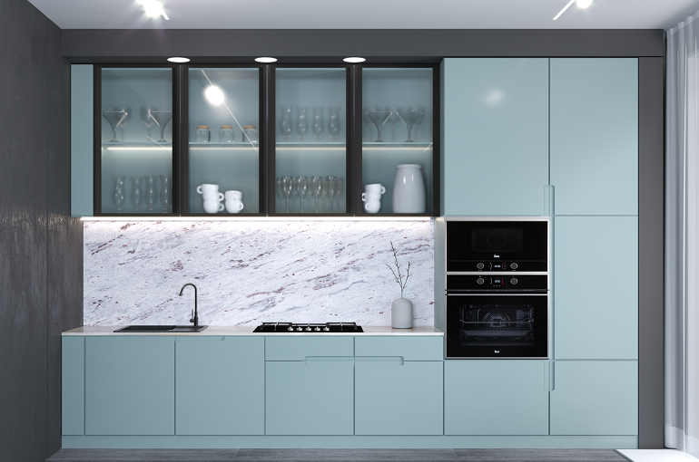 Фасад изготавливается из МДФ толщиной 22 мм - с возможностью покрытия эмалью по каталогам RAL, NCS.
